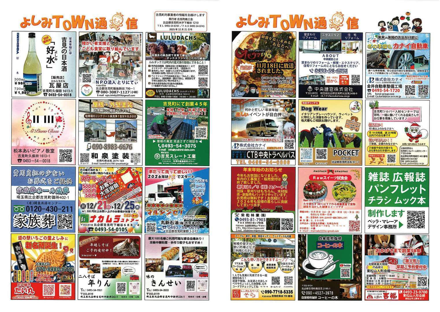 令和7年12月21日(日)の朝刊折り込みにて、吉見町全域に約5,000部配布されております。